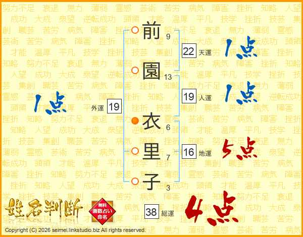前園衣里子さんの総運は38画の4点!
