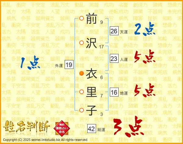 前沢衣里子さんの天運は26画の2点!