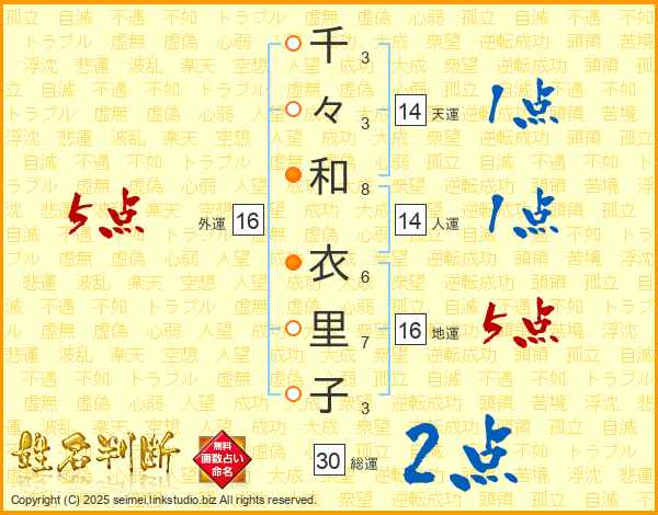 千々和衣里子さんの総運は30画の2点!