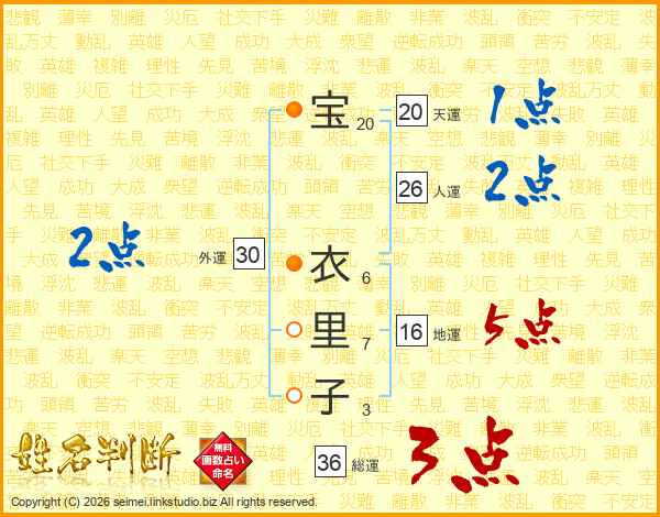 宝衣里子さんの外運は30画の2点!