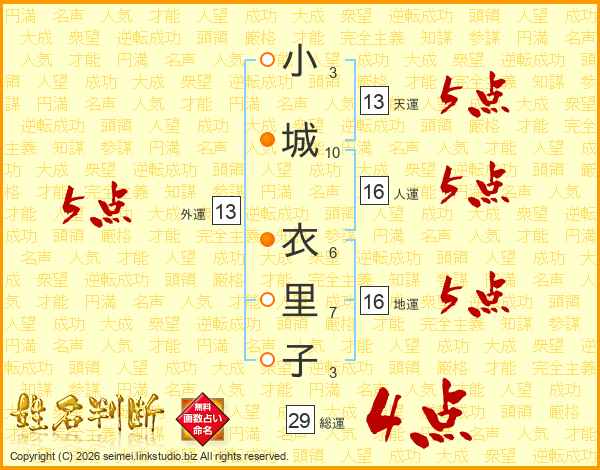 小城衣里子さんの天運は13画の5点!
