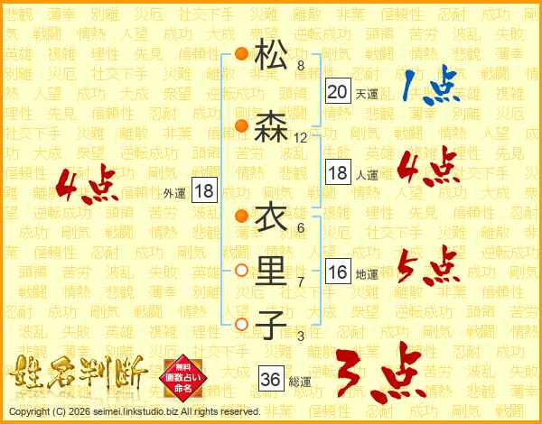 松森衣里子さんの外運は18画の4点!