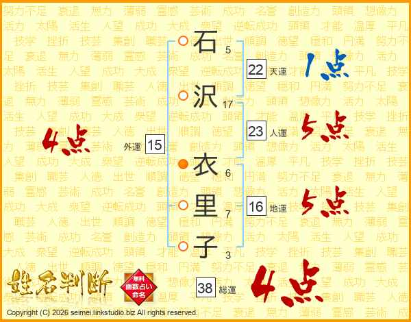 石沢衣里子さんの総運は38画の4点!