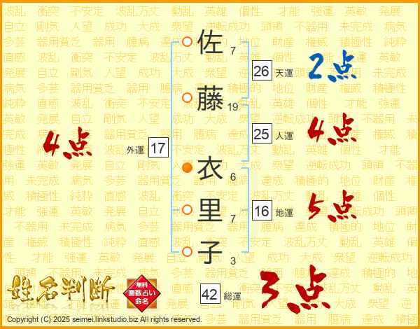 佐藤衣里子さんの人運は25画の4点
