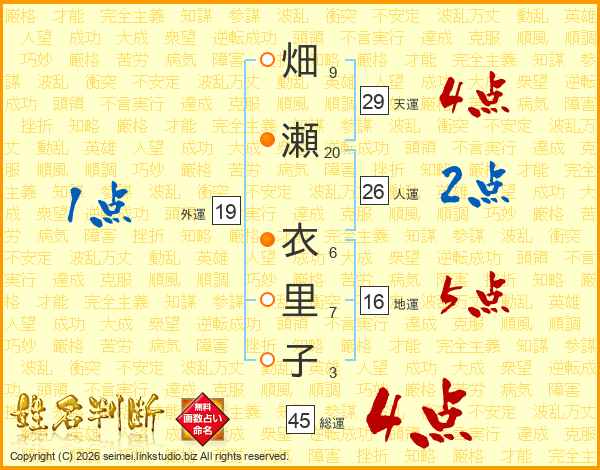 畑瀬衣里子さんの総運は45画の4点!