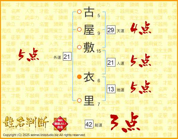 古屋敷衣里さんの天運は29画の4点!
