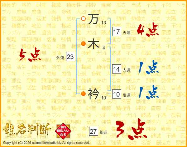 万木衿さんの総運は27画の3点!