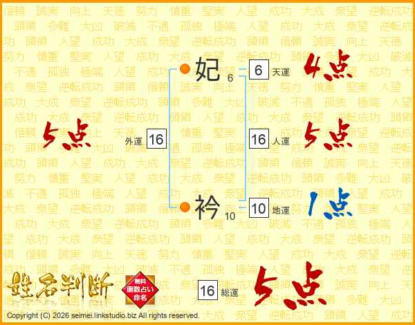 妃衿さんの総運は16画の5点!