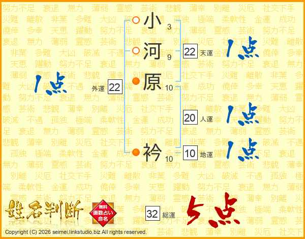 小河原衿さんの総運は32画の5点!