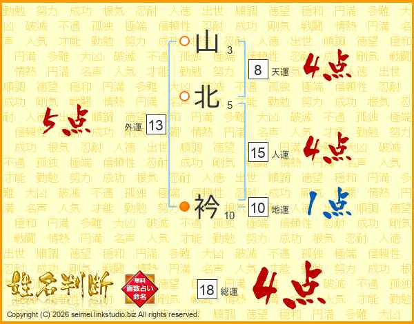 山北衿さんの総運は18画の4点!