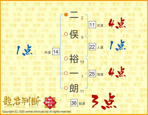 二俣裕一朗さんの天運は11画の4点!