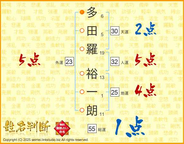 多田羅裕一朗さんの総運は55画の1点!