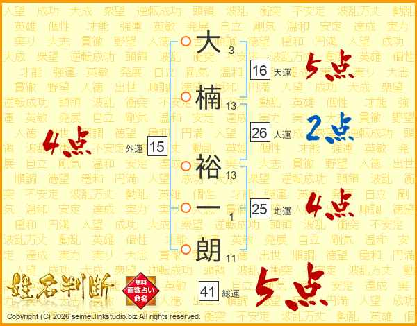 大楠裕一朗さんの総運は41画の5点!
