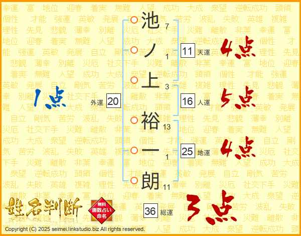 池ノ上裕一朗さんの天運は11画の4点!