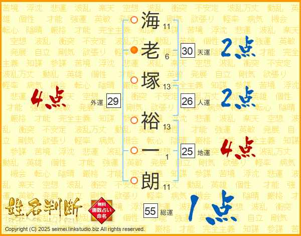 海老塚裕一朗さんの地運は25画の4点!