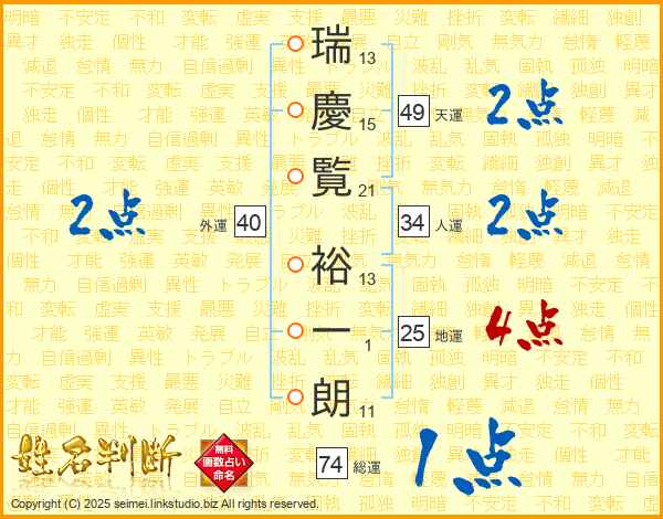 瑞慶覧裕一朗さんの総運は74画の1点!