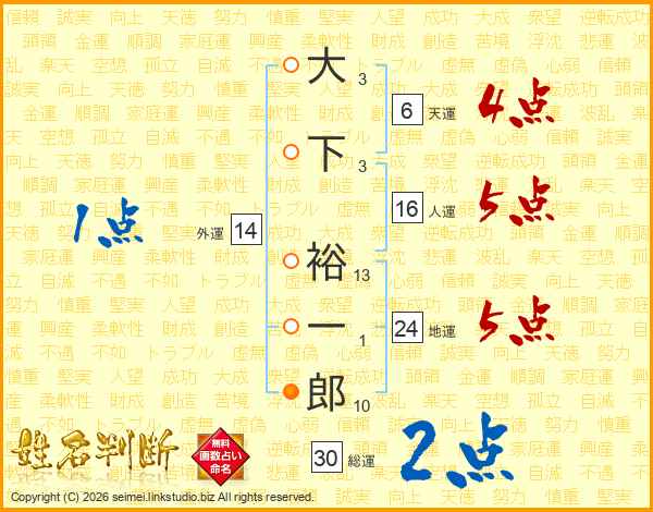 大下裕一郎さんの総運は30画の2点!