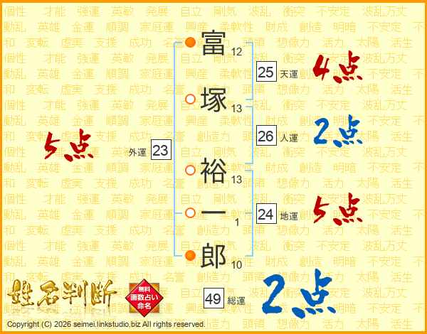 富塚裕一郎さんの総運は49画の2点!