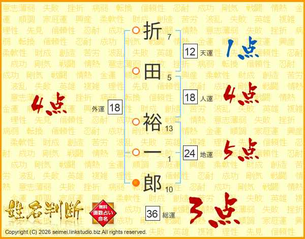 折田裕一郎さんの総運は36画の3点!