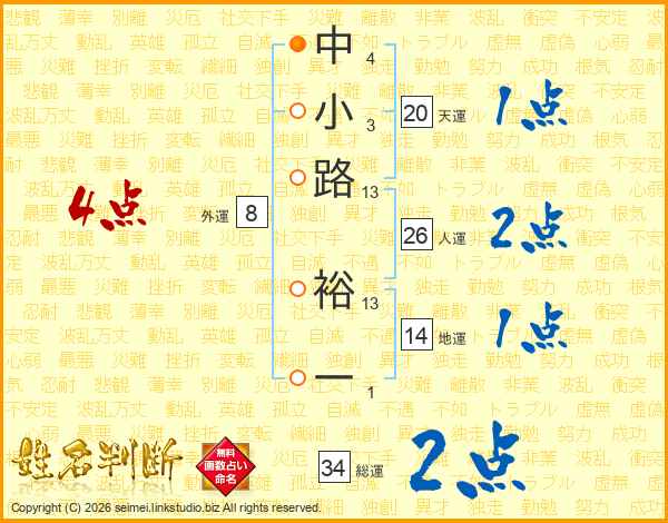 中小路裕一さんの総運は34画の2点!