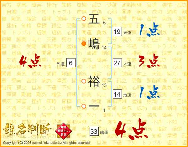 五嶋裕一さんの総運は33画の4点!
