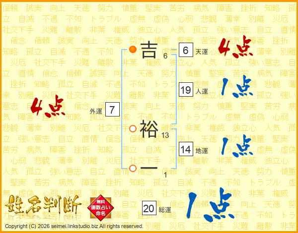 吉裕一さんの総運は20画の1点!