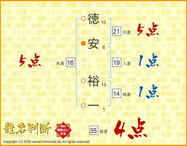 徳安裕一さんの総運は35画の4点!