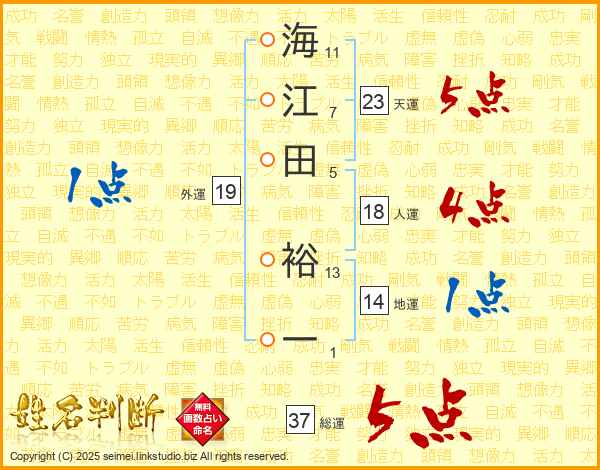 海江田裕一さんの総運は37画の5点!
