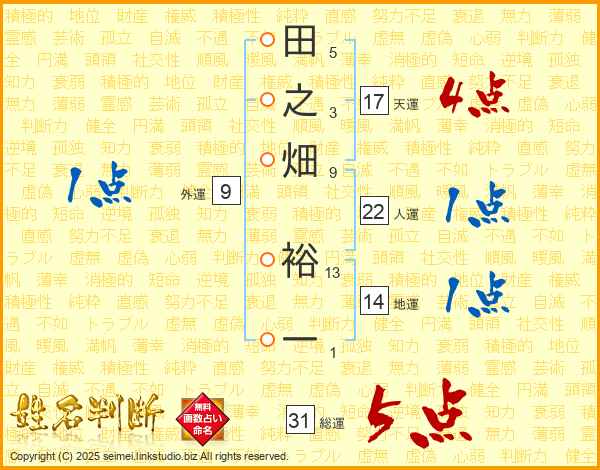 田之畑裕一さんの総運は31画の5点!