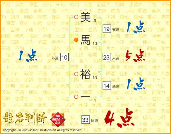 美馬裕一さんの総運は33画の4点!