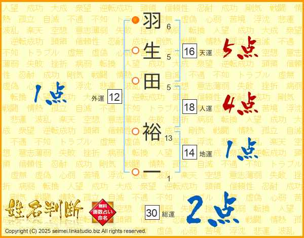 羽生田裕一さんの総運は30画の2点!
