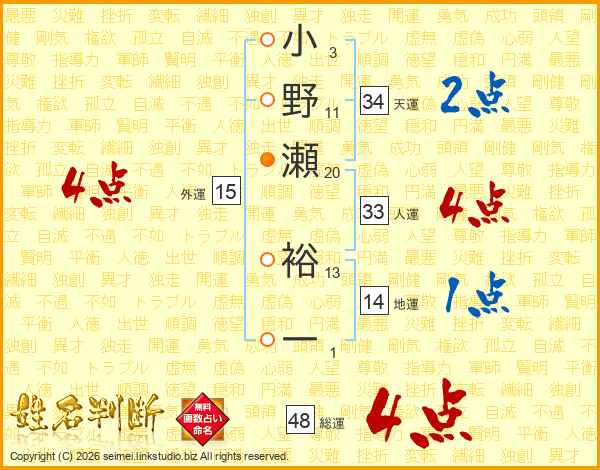 小野瀬裕一さんの総運は48画の4点!