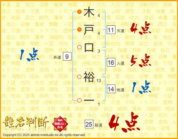 木(4画)戸(4画)口(3画) 裕(13画)一(1画)
