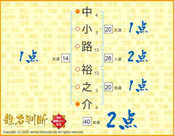 中(4画)小(3画)路(13画) 裕(13画)之(3画)介(4画)