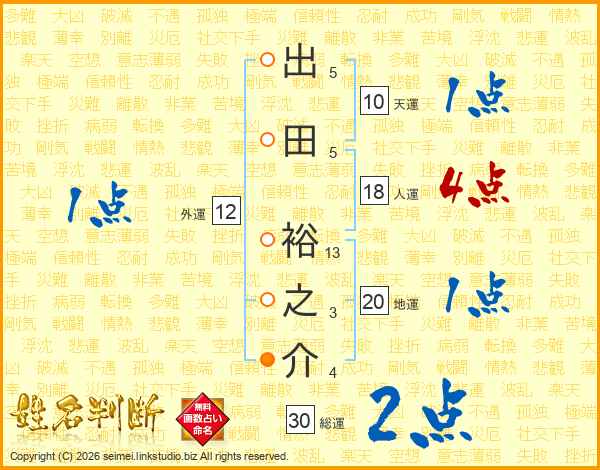 出田裕之介さんの総運は30画の2点!