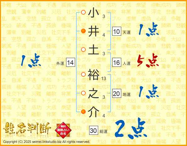 小(3画)井(4画)土(3画) 裕(13画)之(3画)介(4画)