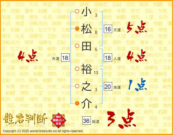 小(3画)松(8画)田(5画) 裕(13画)之(3画)介(4画)