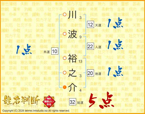川波裕之介さんの総運は32画の5点!