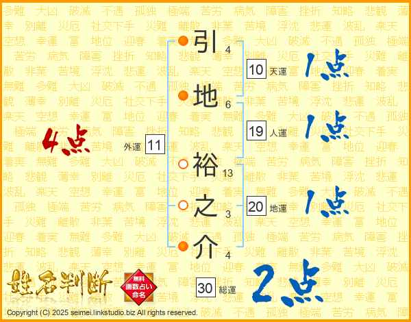 引(4画)地(6画) 裕(13画)之(3画)介(4画)