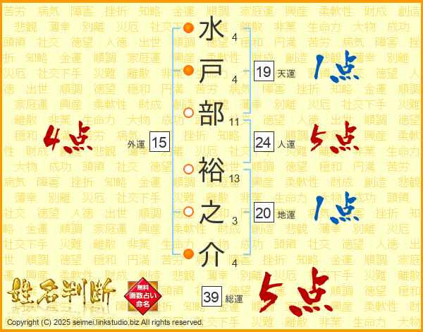水戸部裕之介さんの総運は39画の5点!