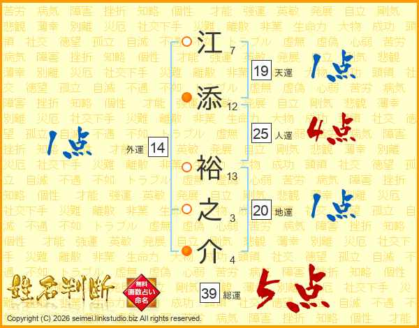 江添裕之介さんの総運は39画の5点!