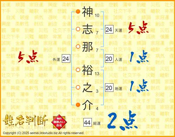 神(10画)志(7画)那(7画) 裕(13画)之(3画)介(4画)