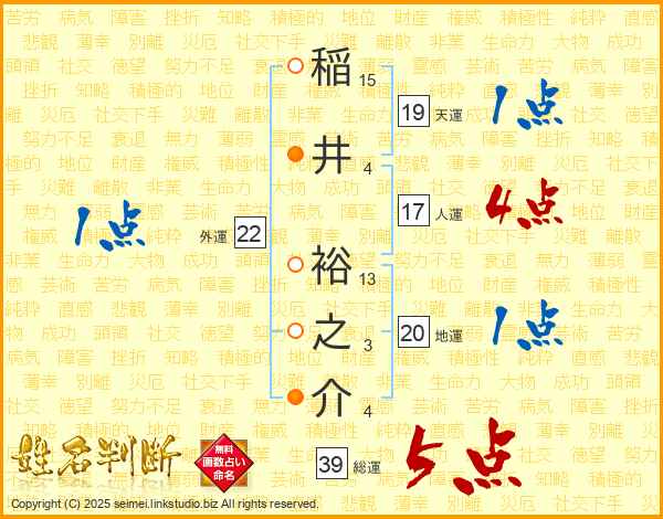 稲井裕之介さんの総運は39画の5点!