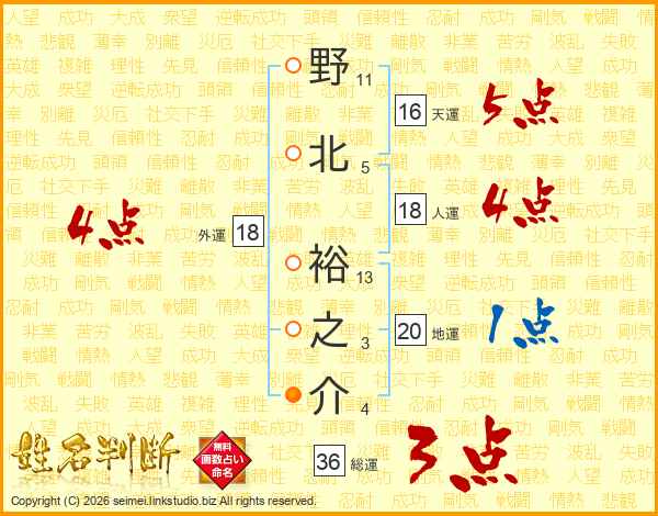野北裕之介さんの総運は36画の3点!
