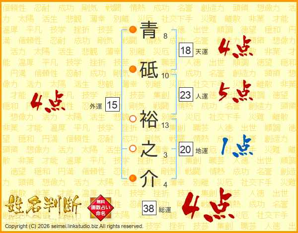 青砥裕之介さんの総運は38画の4点!