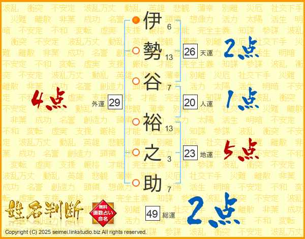 伊勢谷裕之助さんの総運は49画の2点!