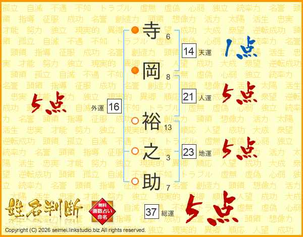 寺岡裕之助さんの総運は37画の5点!