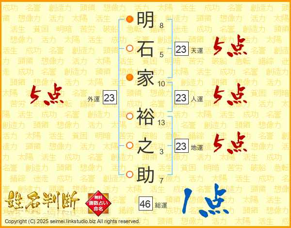 明石家裕之助さんの総運は46画の1点!