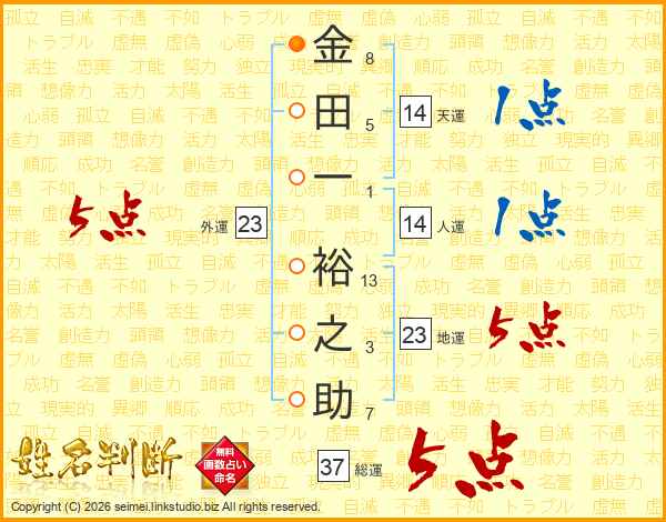 金(8画)田(5画)一(1画) 裕(13画)之(3画)助(7画)