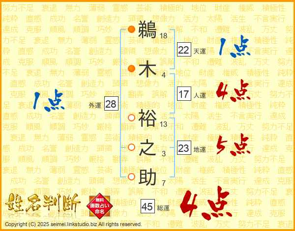 鵜(18画)木(4画) 裕(13画)之(3画)助(7画)